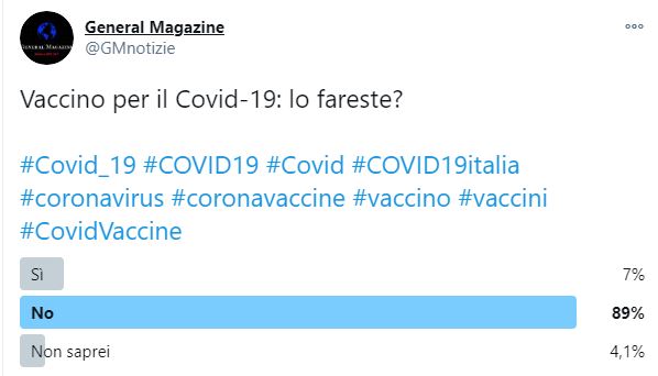 General Magazine, nel frattempo, ha lanciato un sondaggio su twitter per vedere quanti cittadini si sottoporrebbero o meno al vaccino.
