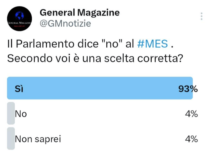 Ma cosa ne pensano i nostri lettori in merito alla decisione del Parlamento? Abbiamo lanciato un sondaggio sulla piattaforma “X” (ex Twitter) chiedendo se, secondo loro, il Parlamento avesse fatto bene o meno a decidere di non ratificare il Mes.