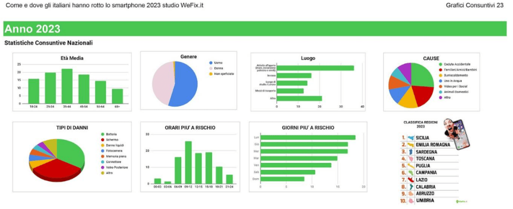 I dati sono offerti da WeFix Lab, il dipartimento statistico di WeFix.it, il booking che seleziona i migliori centri assistenza in tutta Italia per smartphone e che, ogni anno, raccoglie le statistiche relative alle richieste di intervento ricevute dalla piattaforma.